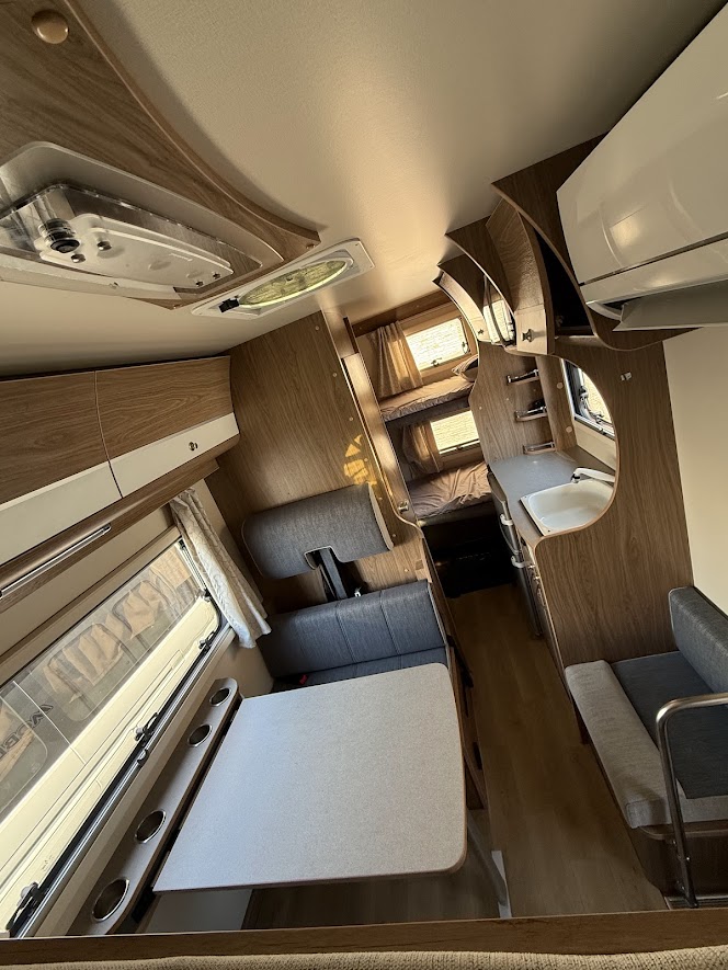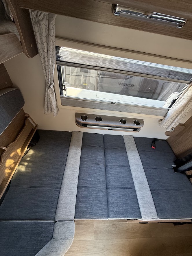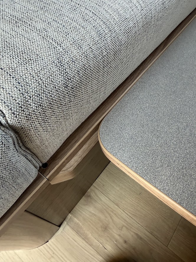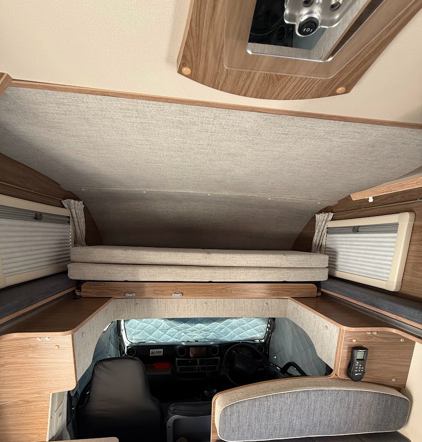 車内中央にあるメインテーブル、ここをベッド展開します。