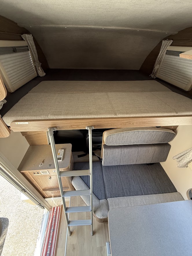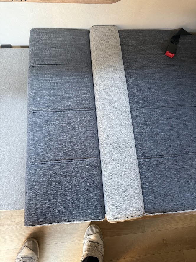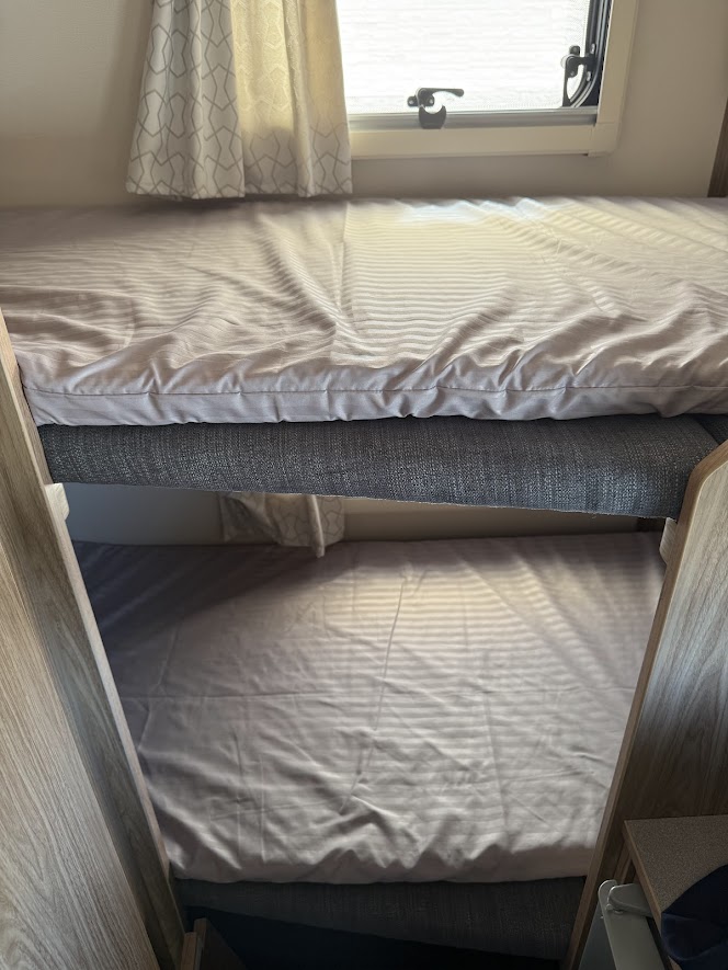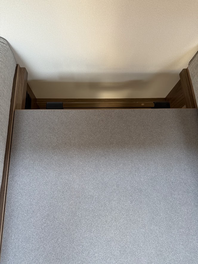 こちらが後方にある2段ベッドになります。70cm×178cm幅で3枚のパネルで成り立っていて取り外しは可能です。